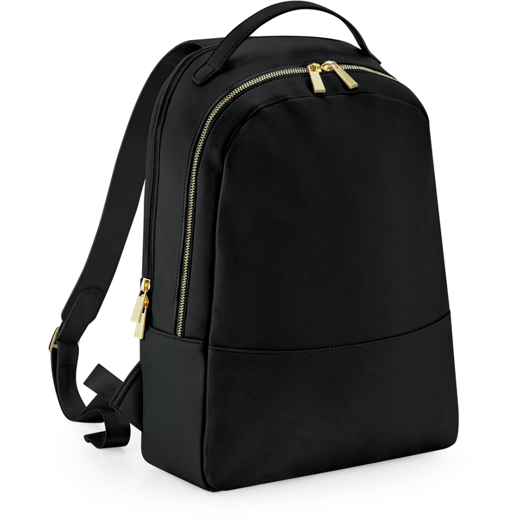 Elegantní batoh "Boutique" je ideální volbou pro stylový outfit. Lesklé zlaté zipy dodávají luxusní vzhled, zatímco vnitřní kapsa a polstrovaná přihrádka na notebook zajišťují praktičnost. Batoh má objem 10l a je vybaven popruhem pro připevnění k zavazadlu. Trendy a funkční doplněk pro každodenní nošení.