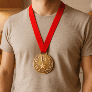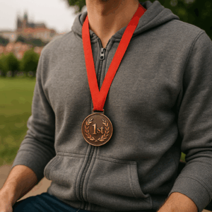 Bronzová medaile o průměru 6 cm s plochou pro potisk (5 cm) je ideální pro sportovní události, školní soutěže nebo firemní akce. Nabízí možnost vytvořit unikátní design, například s logem, textem nebo grafikou, díky personalizovanému potisku. Může být použita jako ocenění pro vítěze či účastníky, přičemž její kvalitní provedení a možnost potisku zajistí, že bude sloužit nejen jako památka, ale také jako propagace.