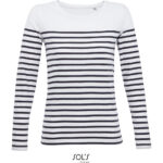 Stylové a originální dámské pruhované tričko s dlouhým rukávem je dokonalým doplňkem pro každou ženu, která miluje pohodlí s dávkou elegance. Má vypasovaný střih a kulatý výstřih, který skvěle podtrhuje postavu. Tričko je nejen velmi měkké na omak, ale také praktické díky štítku TearAway a neutrálnímu velikostnímu štítku. S možností praní na 30°C je to ideální kousek do každodenního šatníku, ale není vhodné sušit v sušičce.