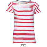 Objevte nový kousek do vaší kolekce! Elegantní dámské pruhované tričko s vypasovaným střihem a ženským kulatým výstřihem, které oceníte každý den. Díky detailům jako uvnitř krční lemovka z tkaniny chambray a štítkem TearAway budete vypadat skvěle a pohodlně zároveň. Ideální volba do každodenního outfitu!