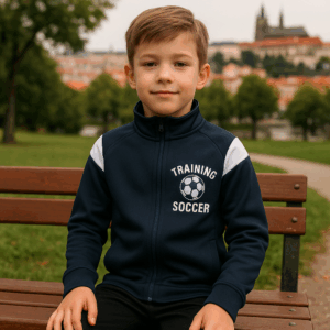 Dětská tréninková bunda pro malé sportovce s moderním designem. Vsadky v kontrastní barvě na hrudi a ramenou dodávají bundě dynamický vzhled. Stojáček s ochranou brady a raglánové rukávy pro pohodlné nošení. Praktické boční kapsy se zipem a texturované textilní vsadky na bocích a vzadu. Matný povrch a kvalitní provedení s detaily jako nylonový zip a páska na manžetách a lemu. Ideální volba pro malé sportovce, kteří chtějí vypadat dobře i při tréninku. Jednoduše pratelné a odolné, stačí vyprat na 40° a je zase připraveno k dalším akcím.