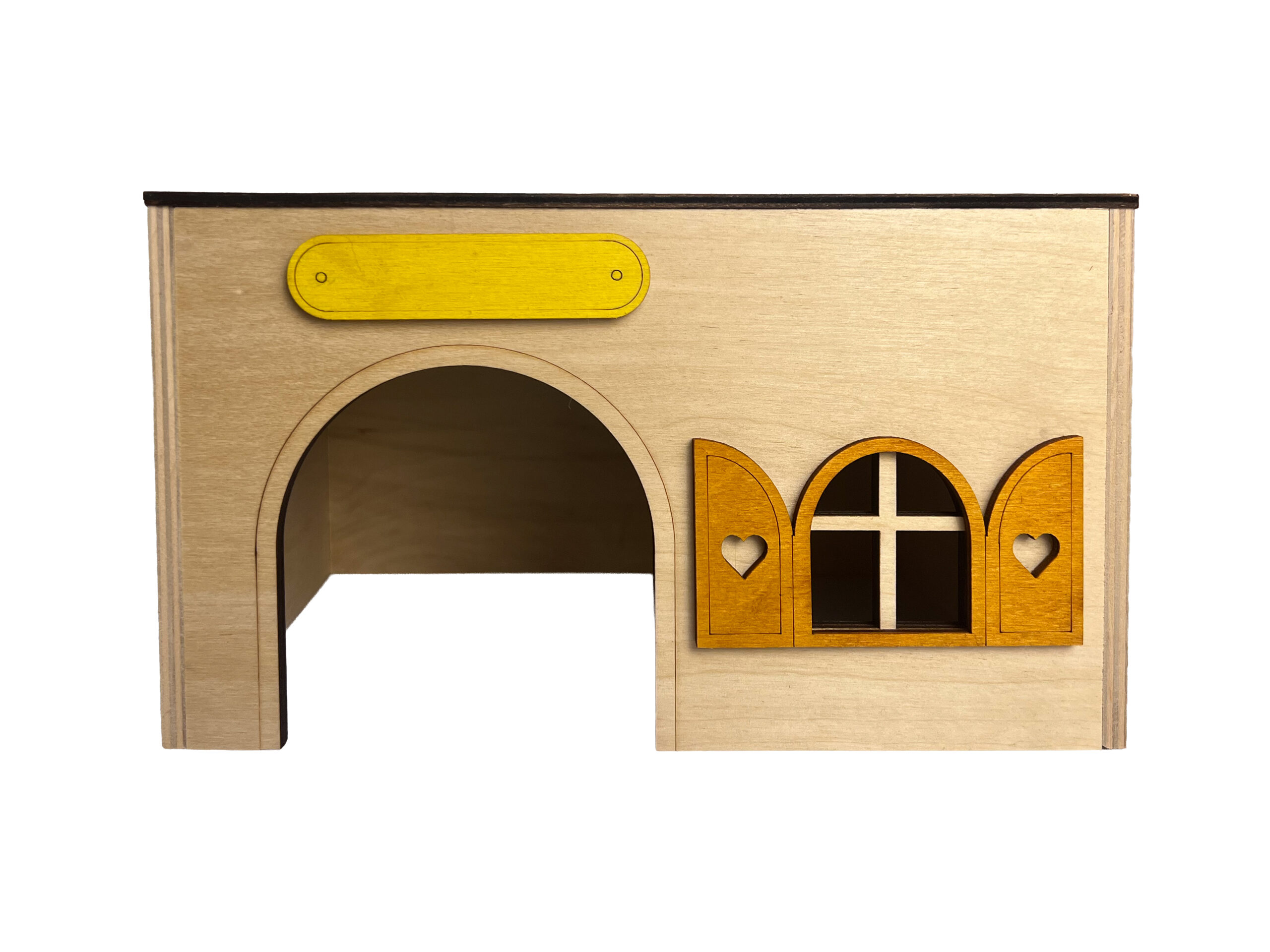 Dřevěný domek „Kvádr“ je pevný a praktický úkryt pro morčata. Díky solidní konstrukci z překližky a zdravotně nezávadnému nátěru poskytuje bezpečné a klidné místo k odpočinku. Domek má pohodlný vstupní otvor a představuje útulné a bezpečné zázemí pro vašeho mazlíčka — ideální jako skrýš nebo místo pro odpočinek.