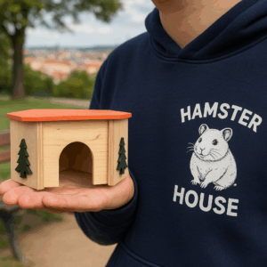 Domek JK rohový pro křečky 11x11x7cm s vlastním potiskem