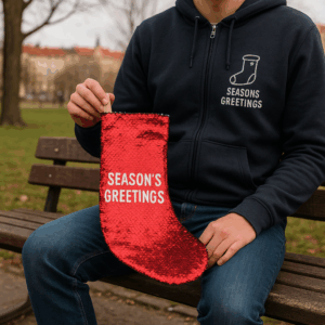 Tato vánoční ponožka pod stromeček se dvoubarevnými flitry nabízí skvělé možnosti pro personalizovaný potisk. Může být skvělým dárkem nebo dekorací pro vaše svátky. Díky flitrům, které mění barvu, je design ještě zábavnější a originální. Ideální pro různé vánoční akce či jako součást vánočního dekoru.