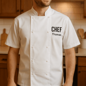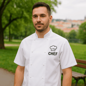 Originální kuchařský rondon s krátkým rukávem je nezbytným doplňkem každého kuchaře. Elegantní mandarín límeček a překrývající se zapínání na 10 patentek dodávají tomuto kusu šarm. Snadno se udržuje při praní na 60° a lze ho čistit i v průmyslové pračce na 85°. S možností sušení v sušičce při nízké teplotě je toto oblečení praktické a stylové zároveň.