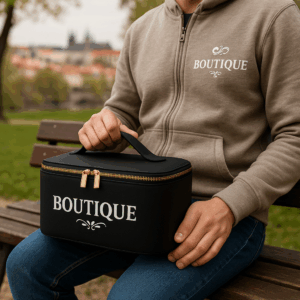 Luxusní kufřík "Boutique" je zářivým doplňkem pro vaše cestování. S lesklými zlatými zipy a elegantní soft-touch podšívkou vás okouzlí hned na první pohled. S vnitřní kapsou na zip a praktickým štítkem TearAway je skvělým společníkem na každý výlet. Objemný a stylový, s rozměry 24x12x12cm, je ideální pro nošení vašeho nejvzácnějšího příslušenství. Stačí ho jemně vyčistit houbičkou a bude vždy připravený vám dopřát skvělé služby.