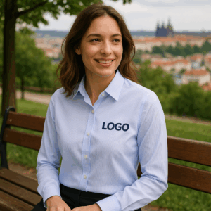Chyťte pozornost s touto mikro keprovou halenkou s jedinečnými detaily: italský límec s jedním knoflíkem, vyztužený kosticemi, nastavitelné manžety a praktické záševky na zadním sedle. Navíc s štítkem TearAway a snadnou údržbou - ideální volba pro vytvoření originálního potisku!