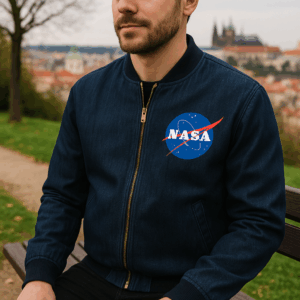 Stylová pánská denim bunda "Bomber" neskutečně výrazná díky 2x2 žebrovanému úpletu na krku, rukávech a pase s elastanem. Celopropínací zip z antické mosazi dodává unikátní vzhled, zatímco 2 přední kapsy s patentkou jsou praktickým prvkem. Uvnitř má bunda také našitou kapsu a vysoce kvalitní podšívka dokonale doplňuje celkový dojem. Skvělá volba pro ty, kteří nebojí vyčnívat z davu a chtějí být svým způsobem jedineční.