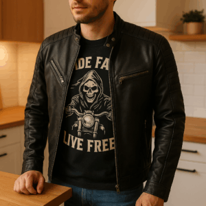 Luxusní pánská motorkářská bunda v sobě kombinuje styl s praktičností. Voděodpudivý materiál a větruodolná konstrukce zajistí pohodlí za všech podmínek. Kovový zip a náprsní kapsy dodávají bundě elegantní vzhled. Kvalitní prošívání a ochranná klopa přidávají na exkluzivitě. Skvělý design pro stylové motorkáře.