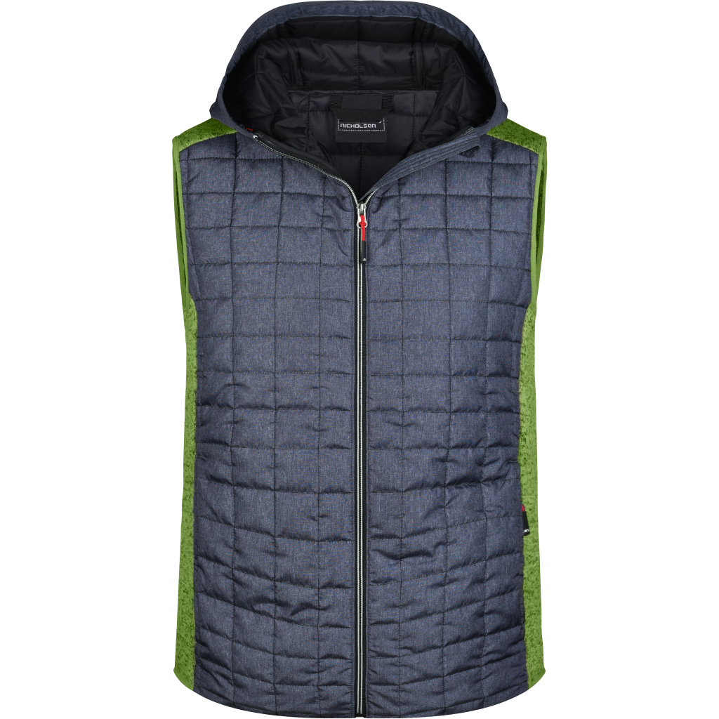 Zažijte dokonalou kombinaci stylu a funkcionality s touto pánskou pletenou hybridní vestou. Vyhřeje vás s kapucí nastavitelnou šířkou a celopropínacím podšitým zipem. S 2 bočními kapsami se zipem a 2 vnitřními kapsami máte vše nezbytné po ruce. Design s károvaným prošíváním na přední a zadní části a kapuci dodává vestě moderní vzhled. Perfektně padnoucí vesta s melanžovým efektem je snadno udržovatelná – stačí ji vyprat na 30°. Ideaální volba pro stylové pány, kteří chtějí být v teple a pohodlí, aniž by ztratili svůj šarm.