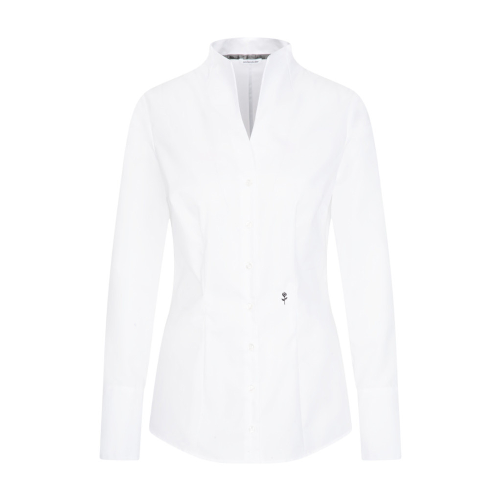 Elegantní popelínová halenka s dlouhým rukávem prostylového Slim Fit střihu. Skvěle padnoucí kalichový límečeka extra široké manžety dopředu. Design s půvabnými záševky na přední a zadní straně dodává halence zvláštní šmrnc. Dokonalé pohodlí díky nežehlivé úpravě, snadné praní na 40° a možnost sušení v sušičce.