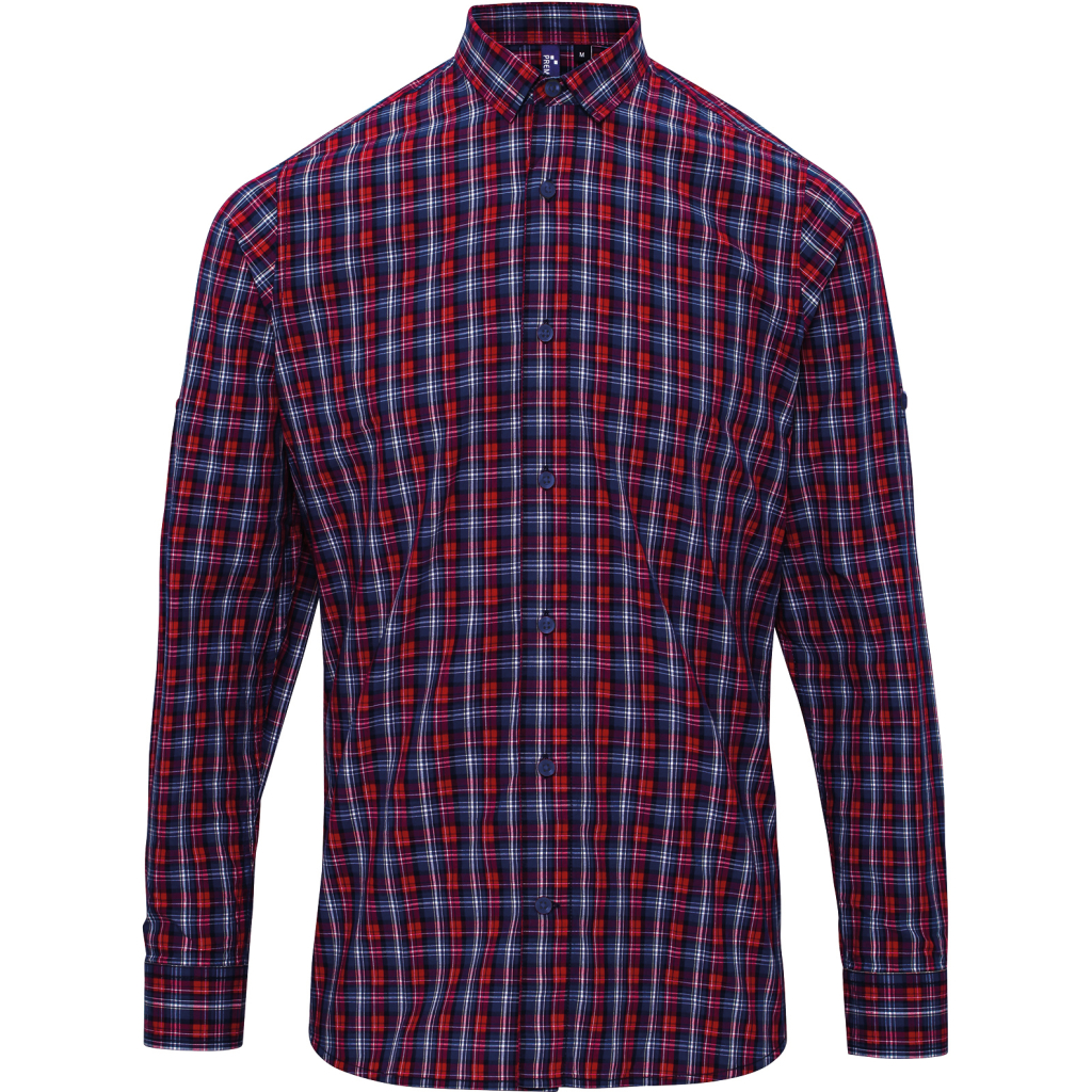 Oživte svůj outfit s touto moderní popelínovou košilí! Lehce vypasovaný střih spolu s úzkým měkkým límcem poskytují elegantní a stylový vzhled. Kombinace vyhrnutých rukávů s poutkem a knoflíkem na paži dodává košili unikátní vzhled. Skvělá volba pro každodenní nošení s zaobleným lemem a 2-barevným kostkovaným vzorem. Perfektně padnoucí košile pro každého, snadno udržovatelná na 40 stupňů.