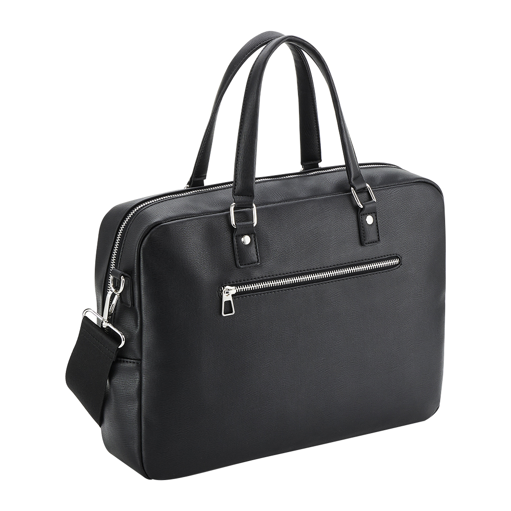 Elegantní taška "Tailored Luxe" v sobě skrývá mnoho praktických prvků pro pohodlné nošení a uspořádání vašich věcí. S odnímatelným ramenním popruhem, různými přihrádkami a držákem na láhev uvnitř je ideální pro váš notebook a další potřeby. Design s přední kapsou na zip a možností zušlechtění v podšívce dodává tašce luxusní vzhled.