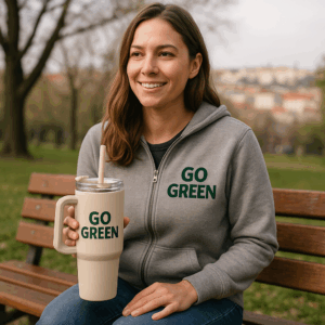 Navrhněte si vlastní termohrnek s madlem 900 ml z RCS recyklovaného plastu s potiskem online a levně! 🌱 Tento ekologický termohrnek s dvojitou stěnou udrží vaše nápoje teplé nebo studené. Potisk termohrnků levně a online. Ideální pro firmy i jednotlivce, kteří hledají udržitelný reklamní produkt nebo osobní dárek. Vytvořte si vlastní potisk a propagujte svůj brand originálně a ekologicky!